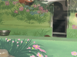 大家在外面看它,它也好奇地扒到墻上看大家,仿佛在說(shuō)“人,泥嚎~”